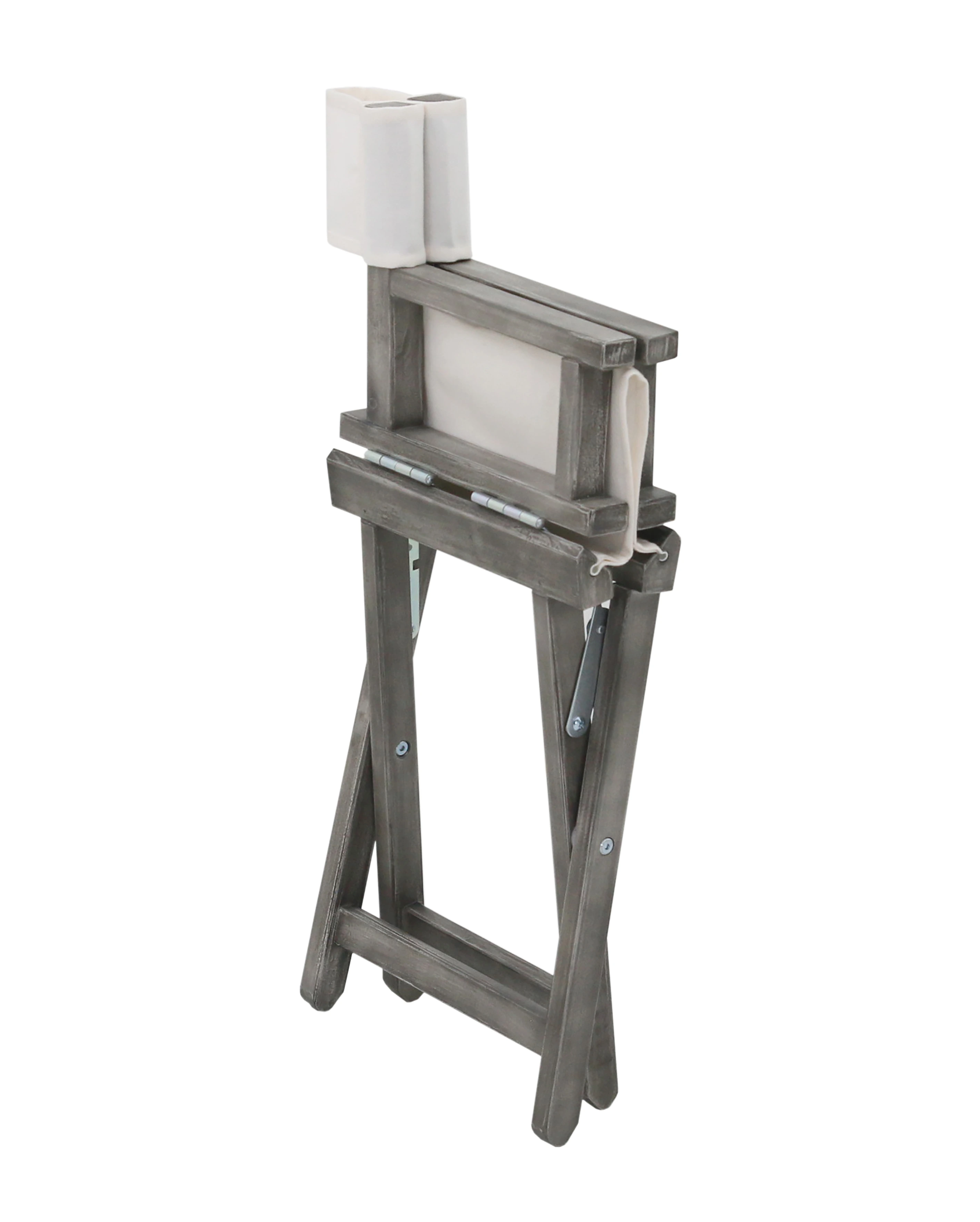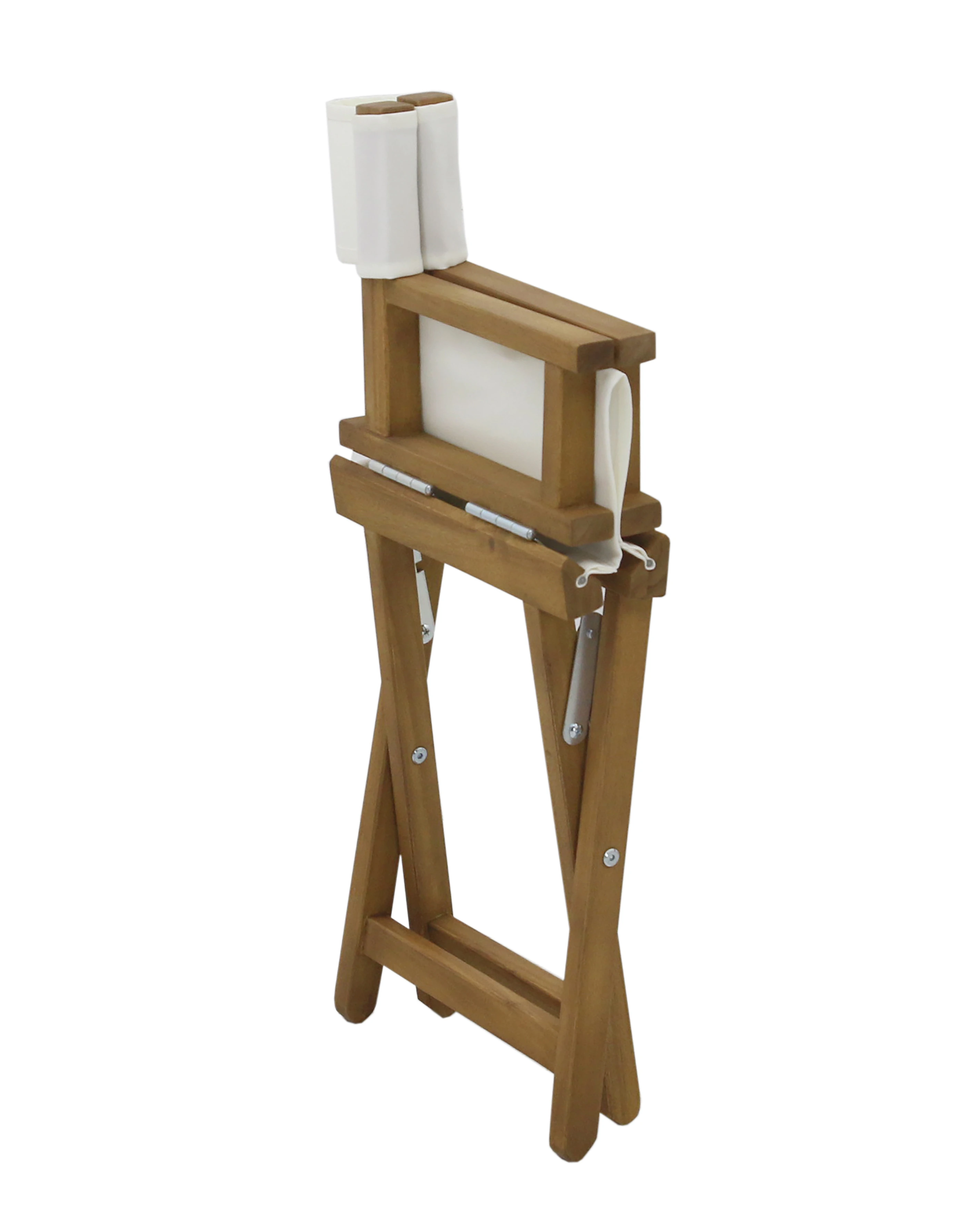 Ce fauteuil metteur en scène est fabriqué en bois d'acacia de première qualité. Son bois naturel huilé, peint en blanc ou en gris garantit une finition soignée. Sa toile en polyester 100% (320 g/m²) est résistante et confortable et son système pliable permet un rangement facile.