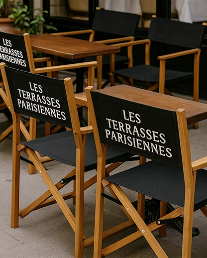 Cette technique s'adapte à l'ensemble de notre gamme de produits. Elle convient parfaitement pour les prénoms des chaises metteurs en scène baby, aux logos d'entreprises, aux écussons personnalisés et aux motifs décoratifs de toutes tailles pour les chaises metteurs en scène adulte, director et make up.